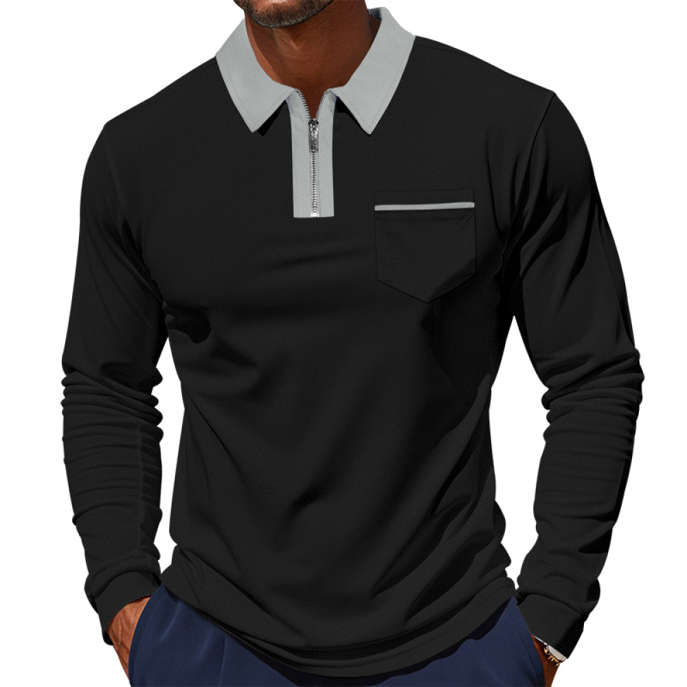 الرجال قميص طويل الأكمام تي شيرت بولو طوق قمصان غير رسمية فضفاضة تناسب سستة تقسم جيوب البلوز 2025 الربيع المرقعة