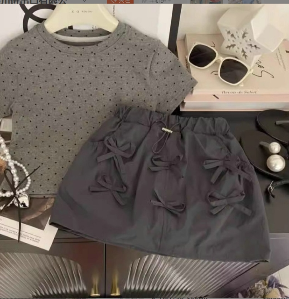 الفتيات الكورية 2025 النسخة القوس تي شيرت مطبوع قطعتين مجموعة بسيطة أعلى ملابس العمل ثلاثي الأبعاد القوس نصف تنورة مجموعة