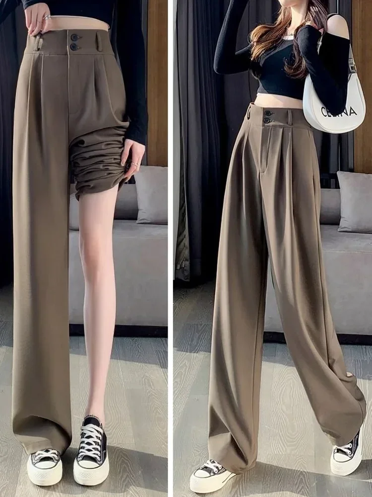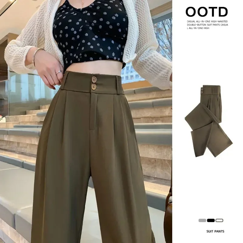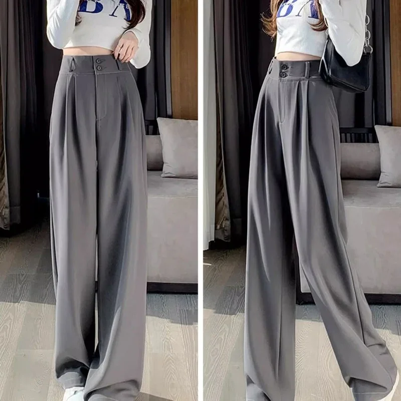 بنطلون نسائي رسمي ذو تصميم كلاسيكي أنيق مستوحى من البدل الرسمية، مع قصة مستقيمة واسعة وأزرار مزدوجة تضيف لمسة فخامة وتميز لإطلالتكِ في العمل والمناسبات.