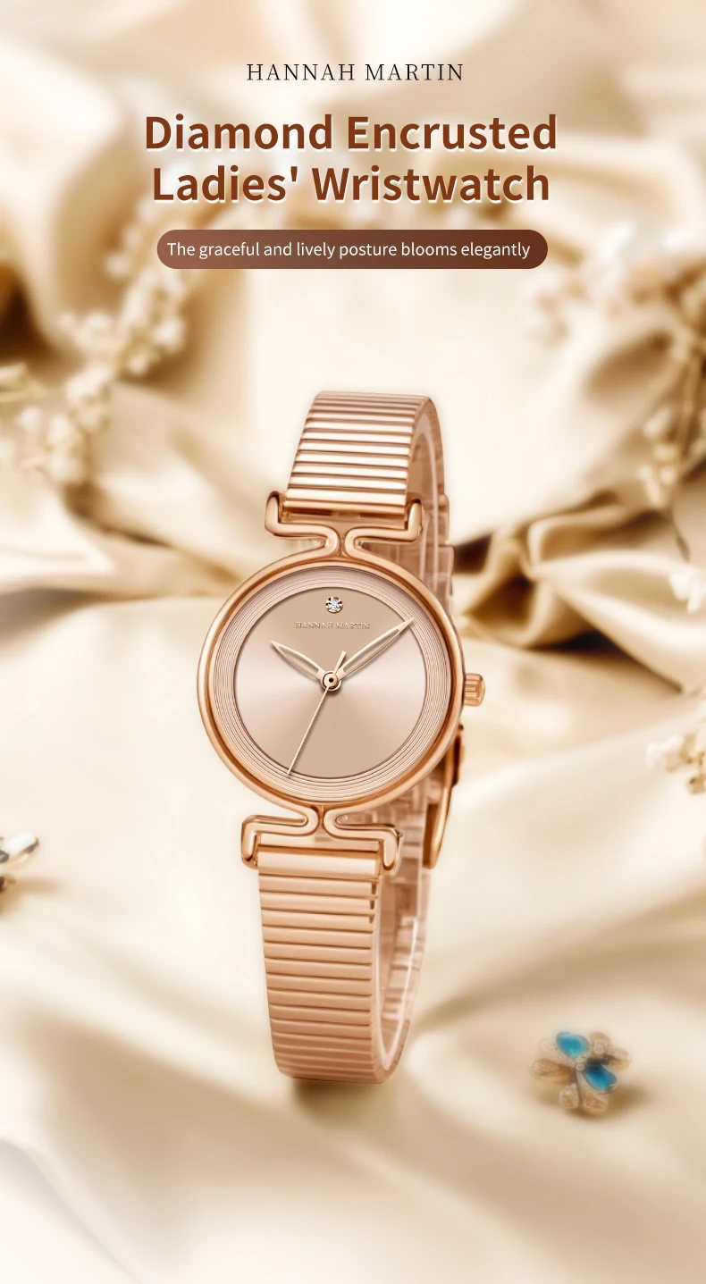ساعة هانا مارتن الأصلية للنساء من أفضل العلامات التجارية 29 ملم مينا صغيرة باللون الذهبي الوردي ساعة يد بحركة كوارتز يابانية فاخرة للنساء