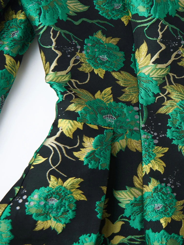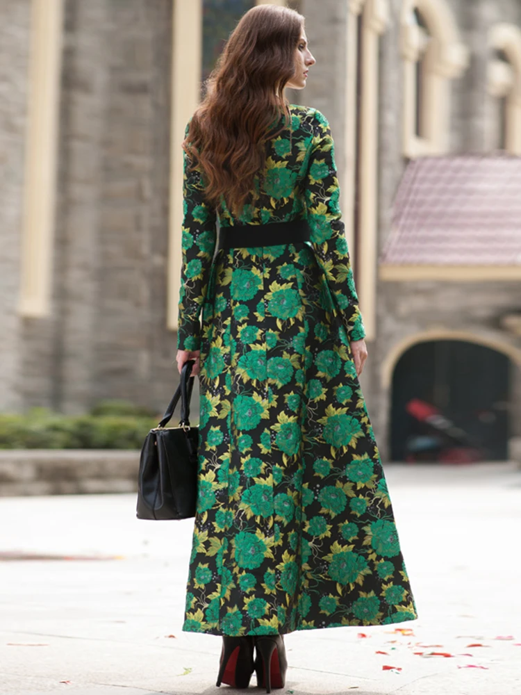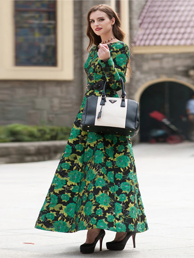 فساتين نسائي ذات تصميم فاخر يجمع بين الأناقة الكلاسيكية واللمسة العصرية مع فستان نسائي طويل الأكمام باللون الزهري مزين بنقوش جاكار مطرزة تعكس الفخامة والرقي، مثالي للسهرات والمناسبات الخاصة مع راحة مثالية للارتداء طوال اليوم