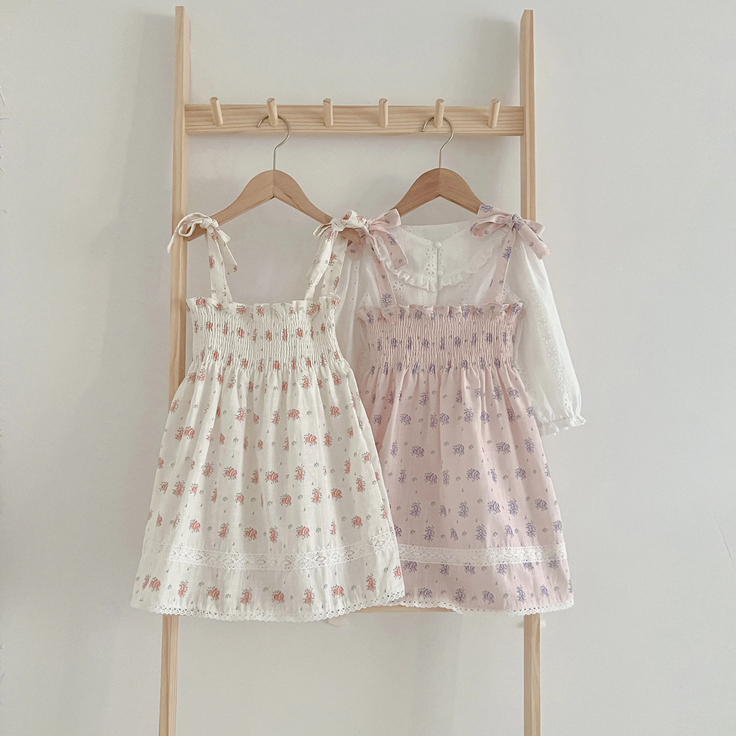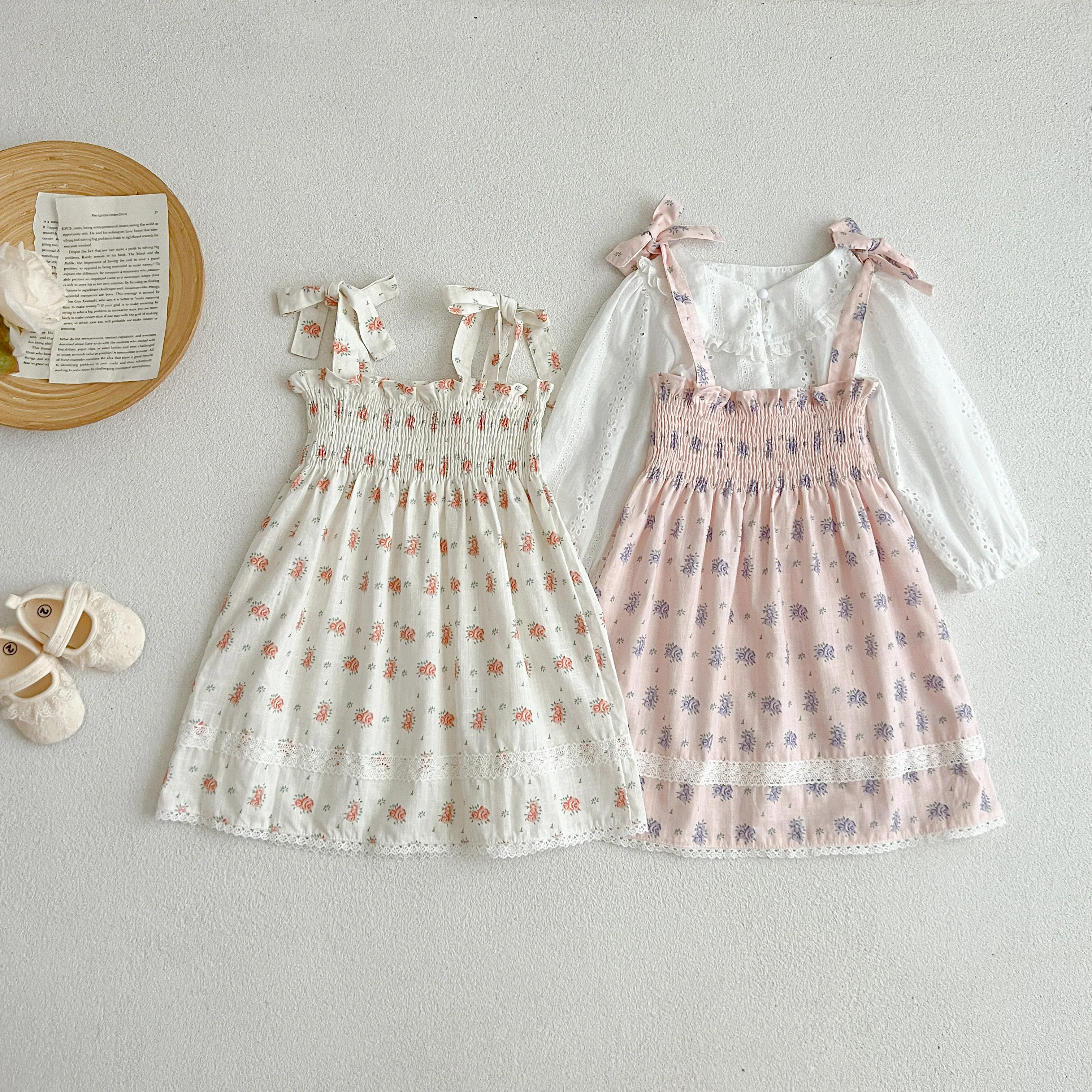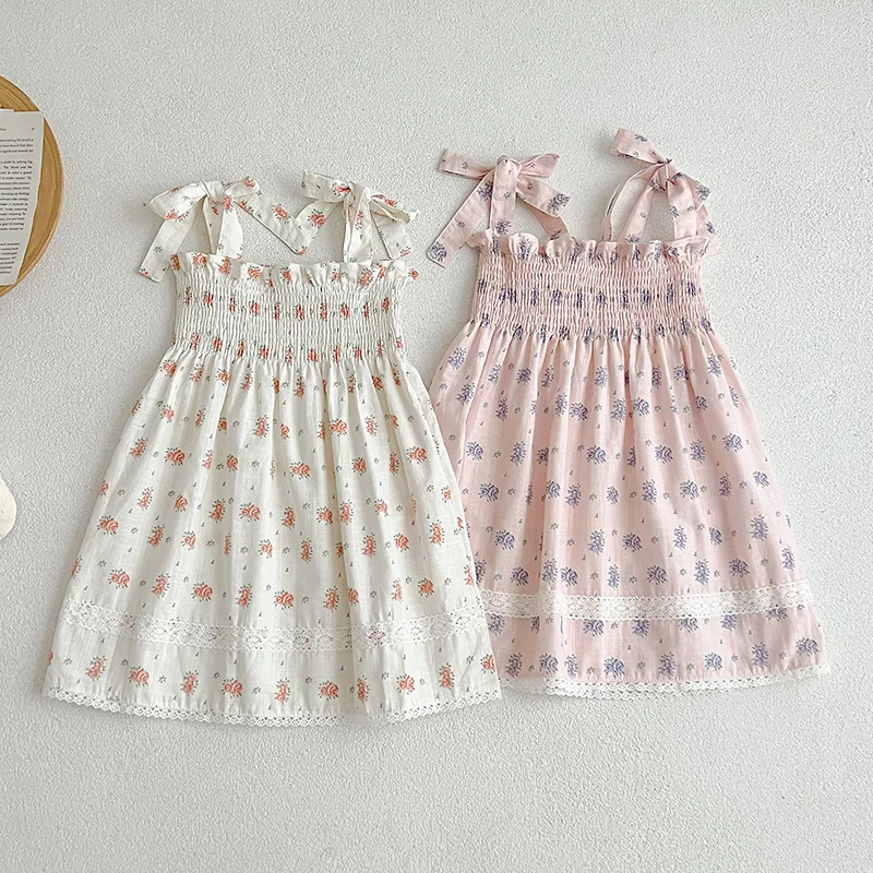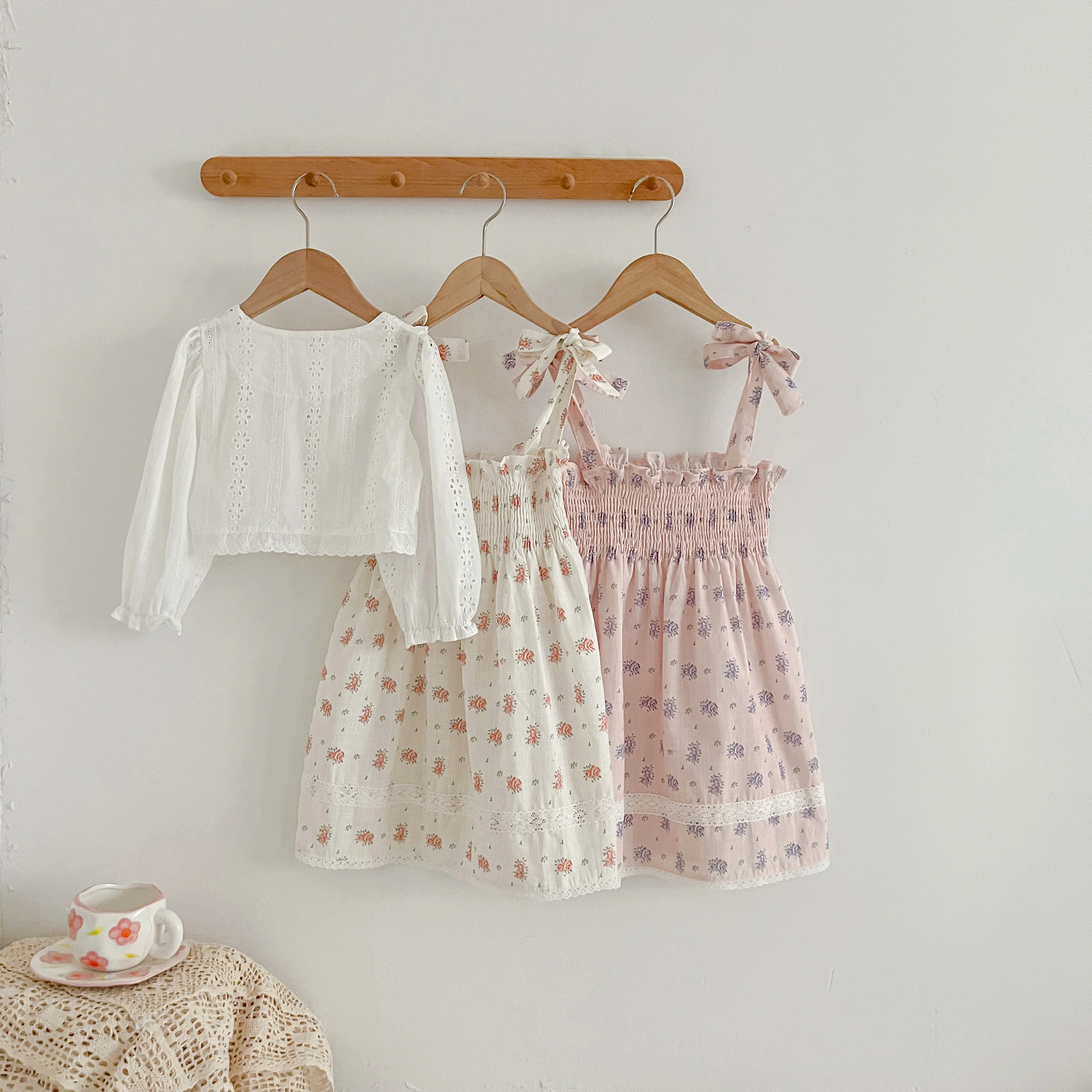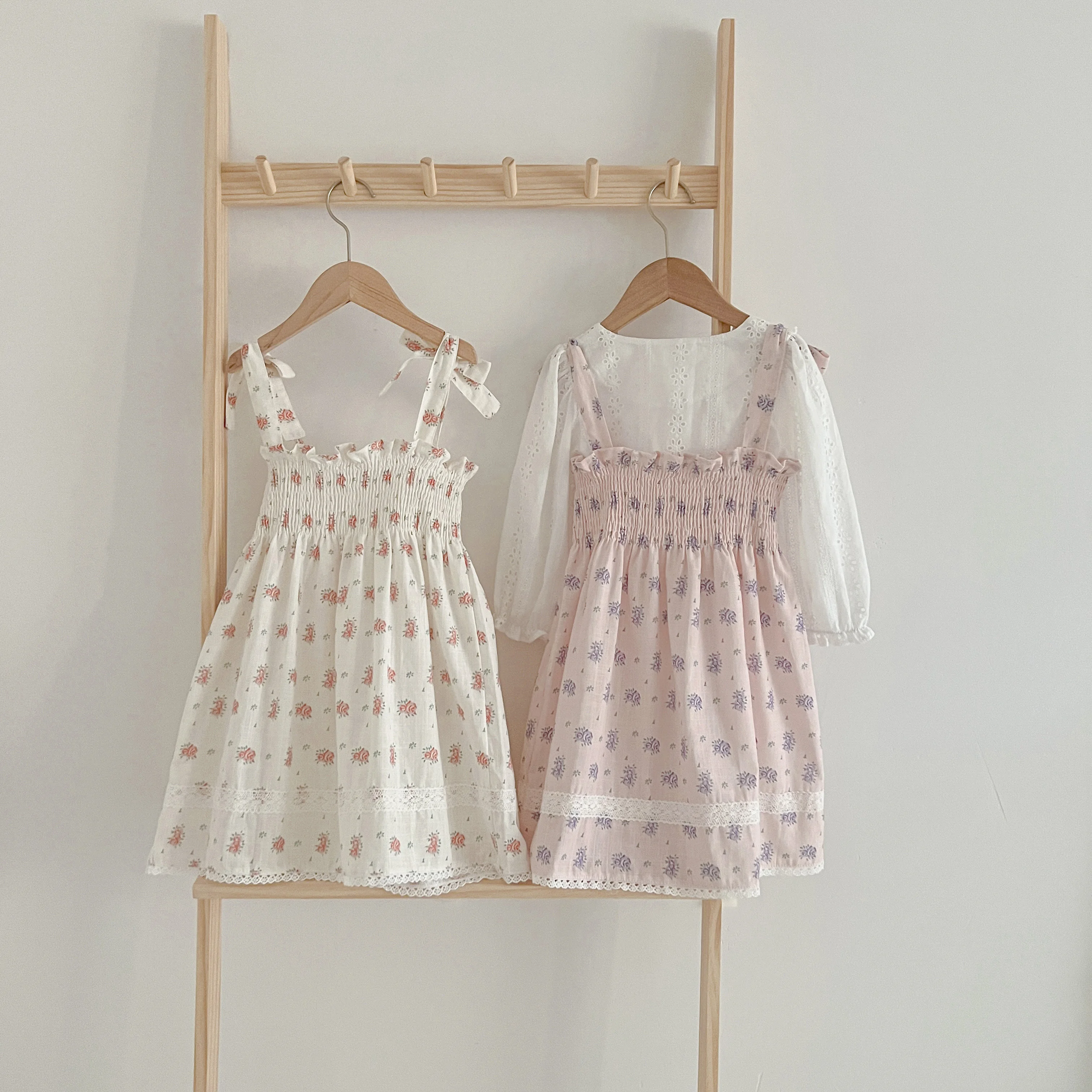 فستان صيفي للفتيات بزهور بروتيل مطرز مرصع بالخصر فستان دانتيل عصري لطيف للأطفال ملابس كورية للعطلات