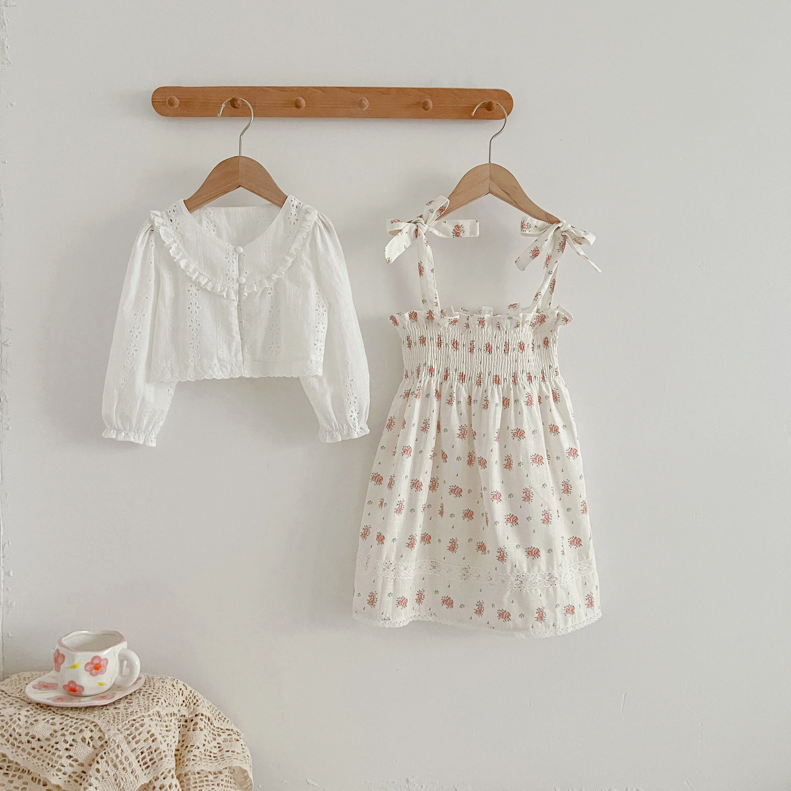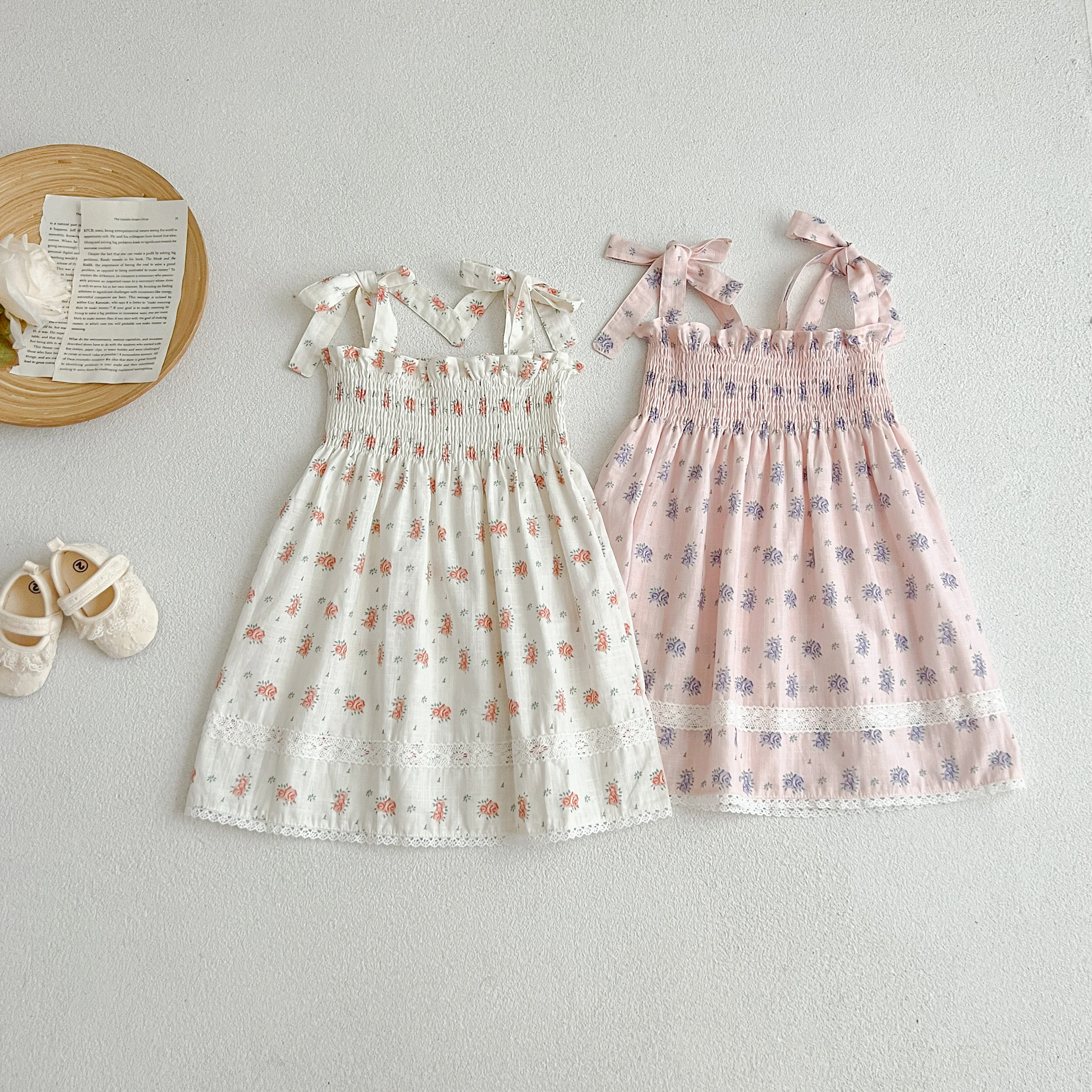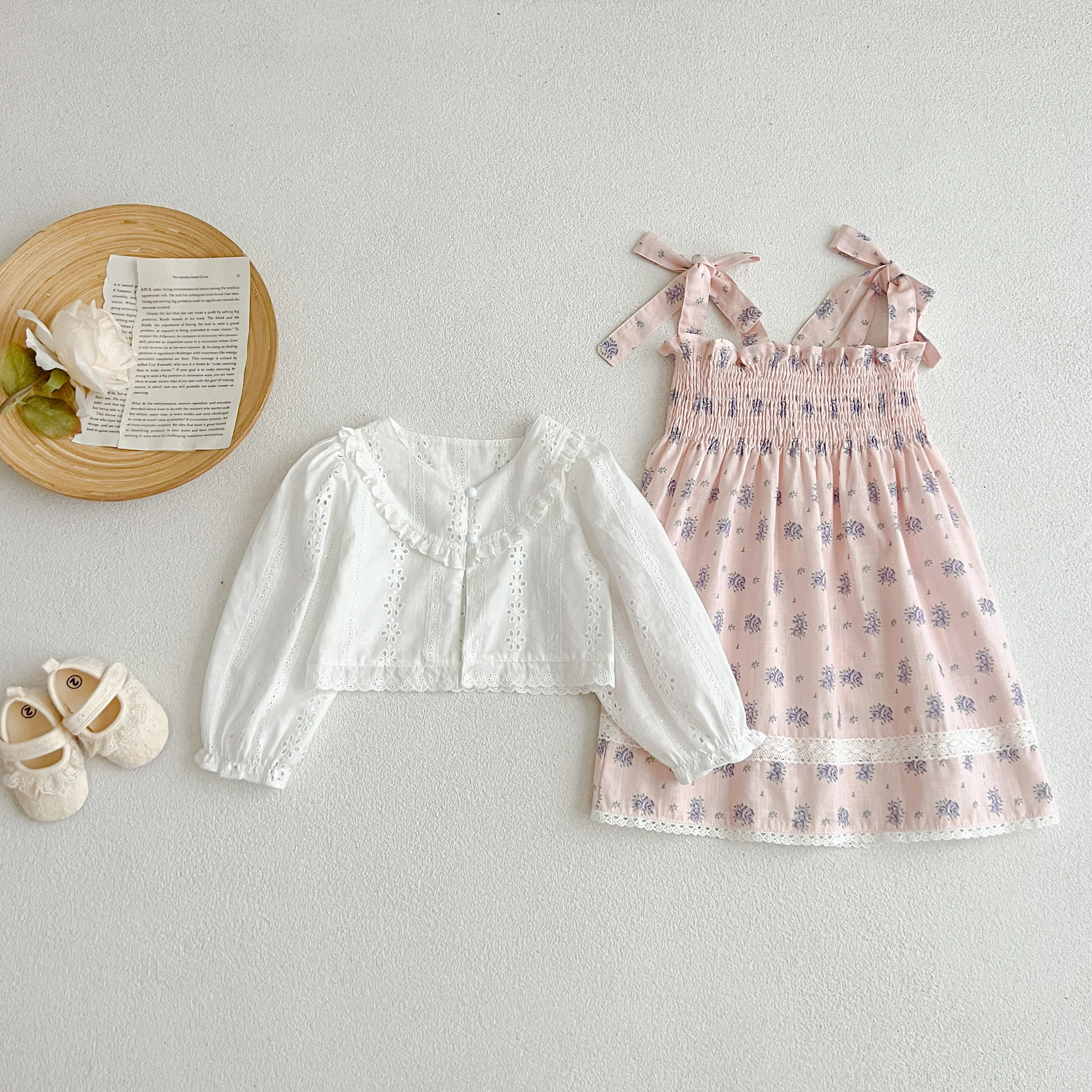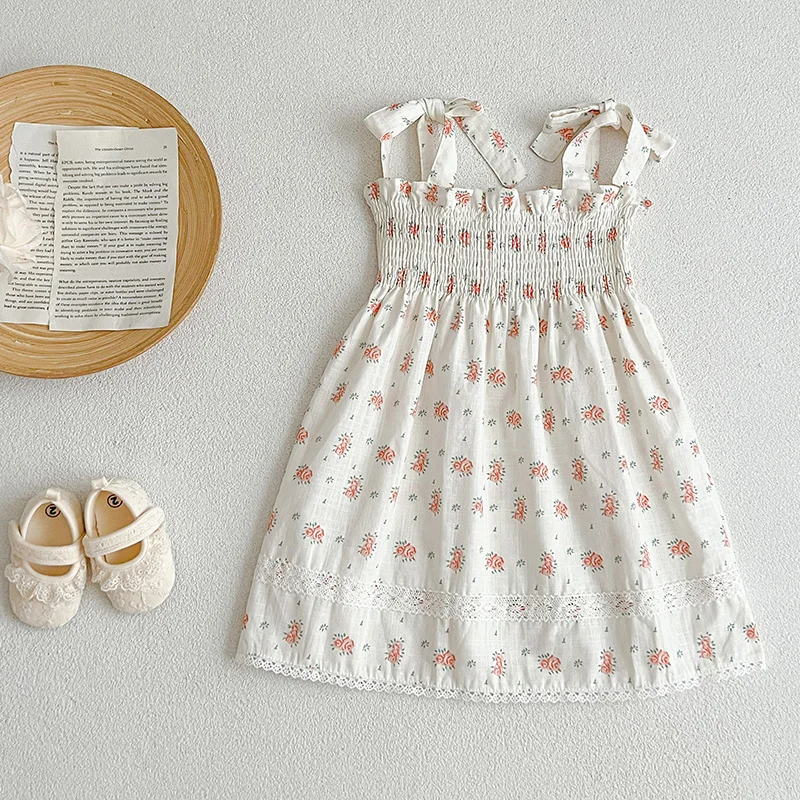 فستان صيفي للفتيات بزهور بروتيل مطرز مرصع بالخصر فستان دانتيل عصري لطيف للأطفال ملابس كورية للعطلات