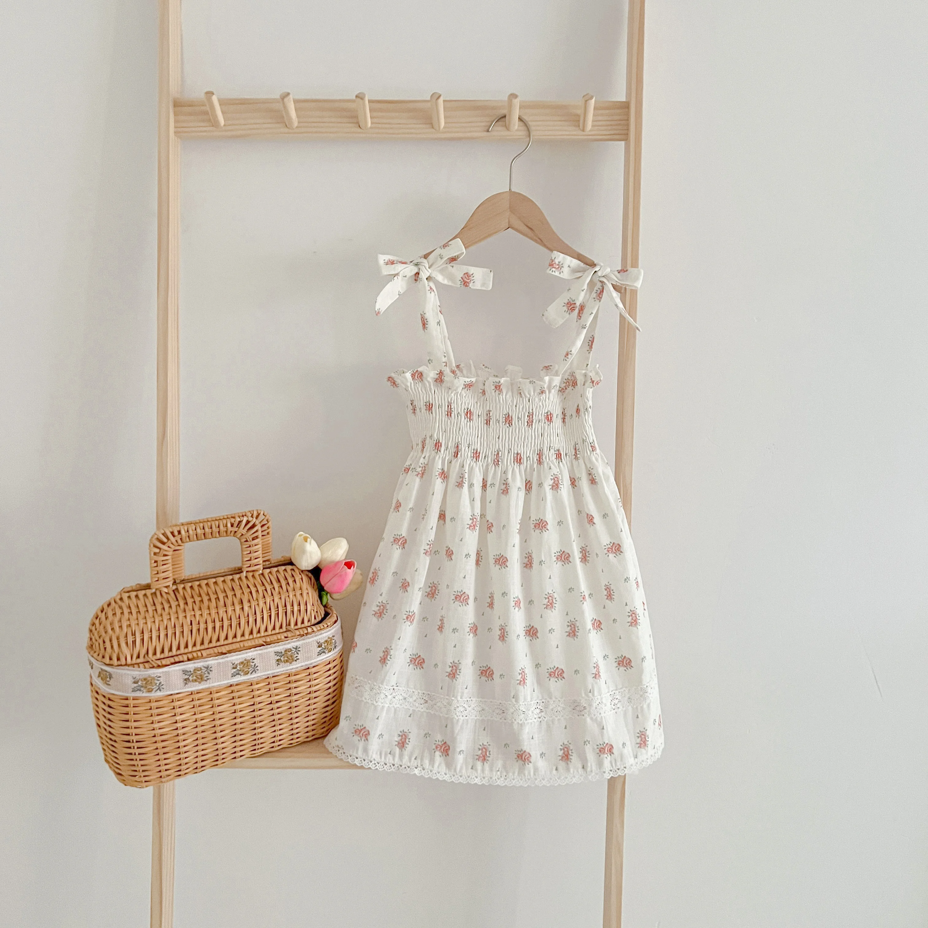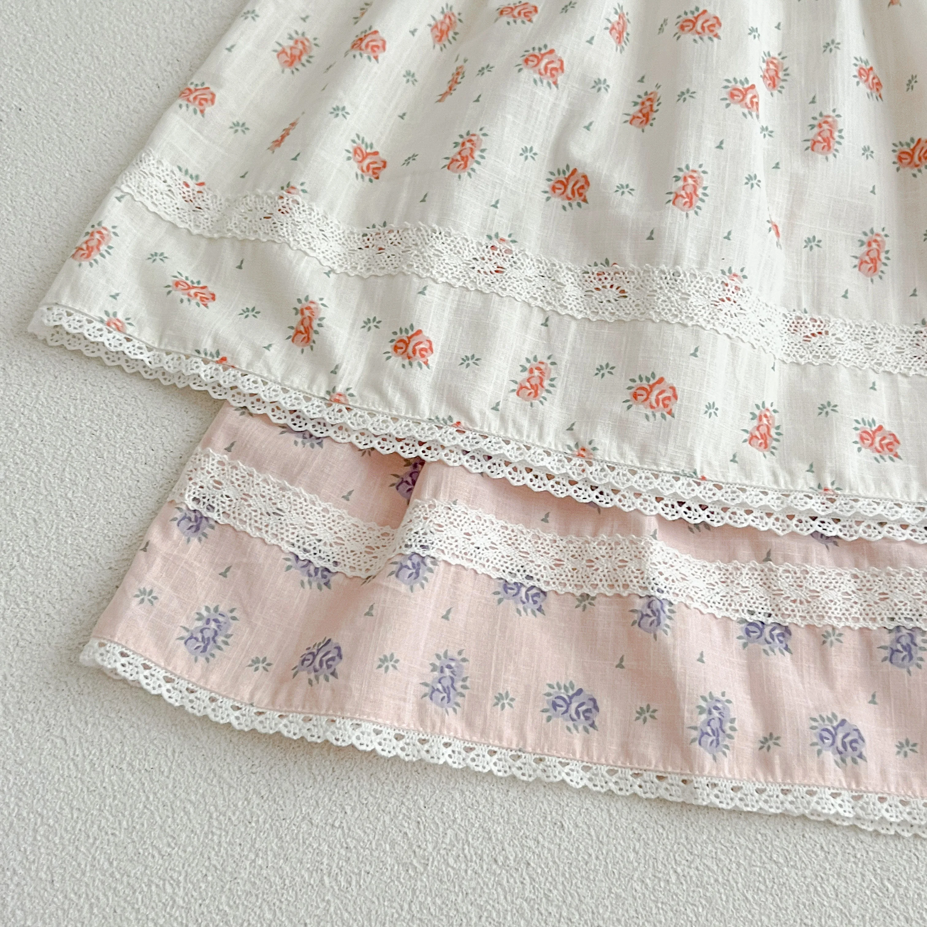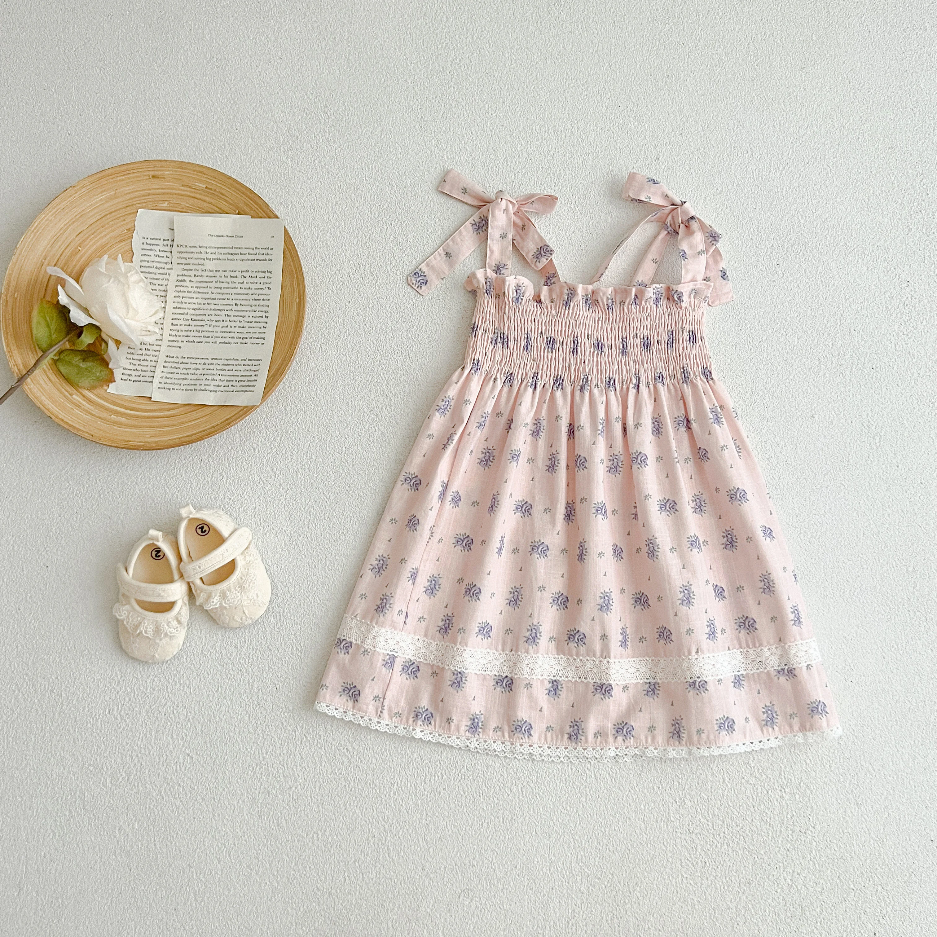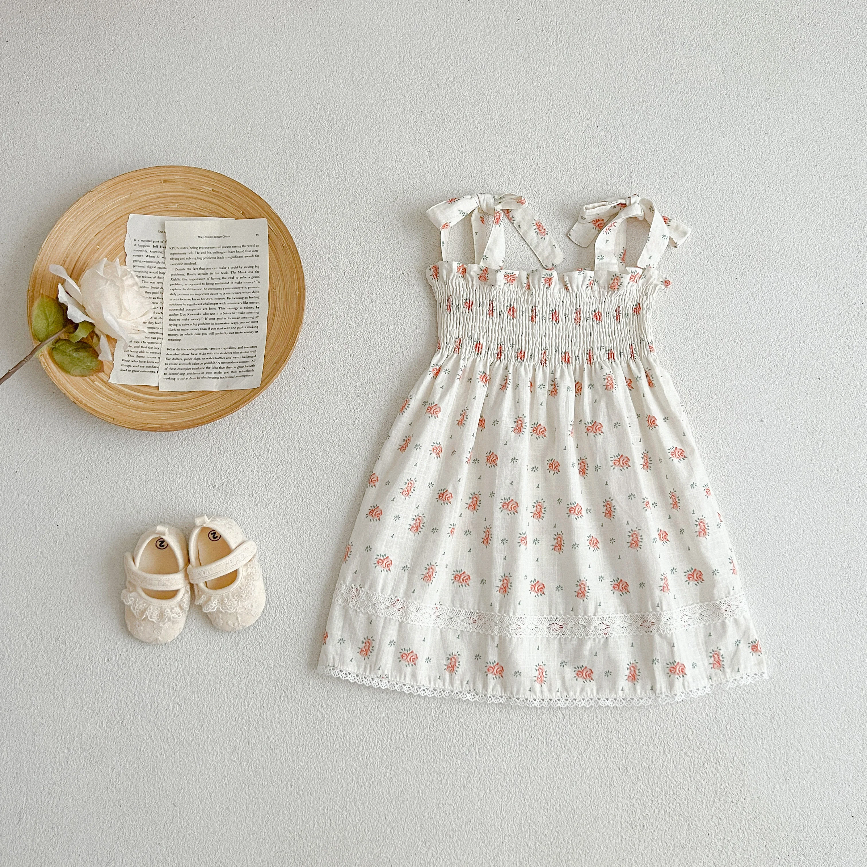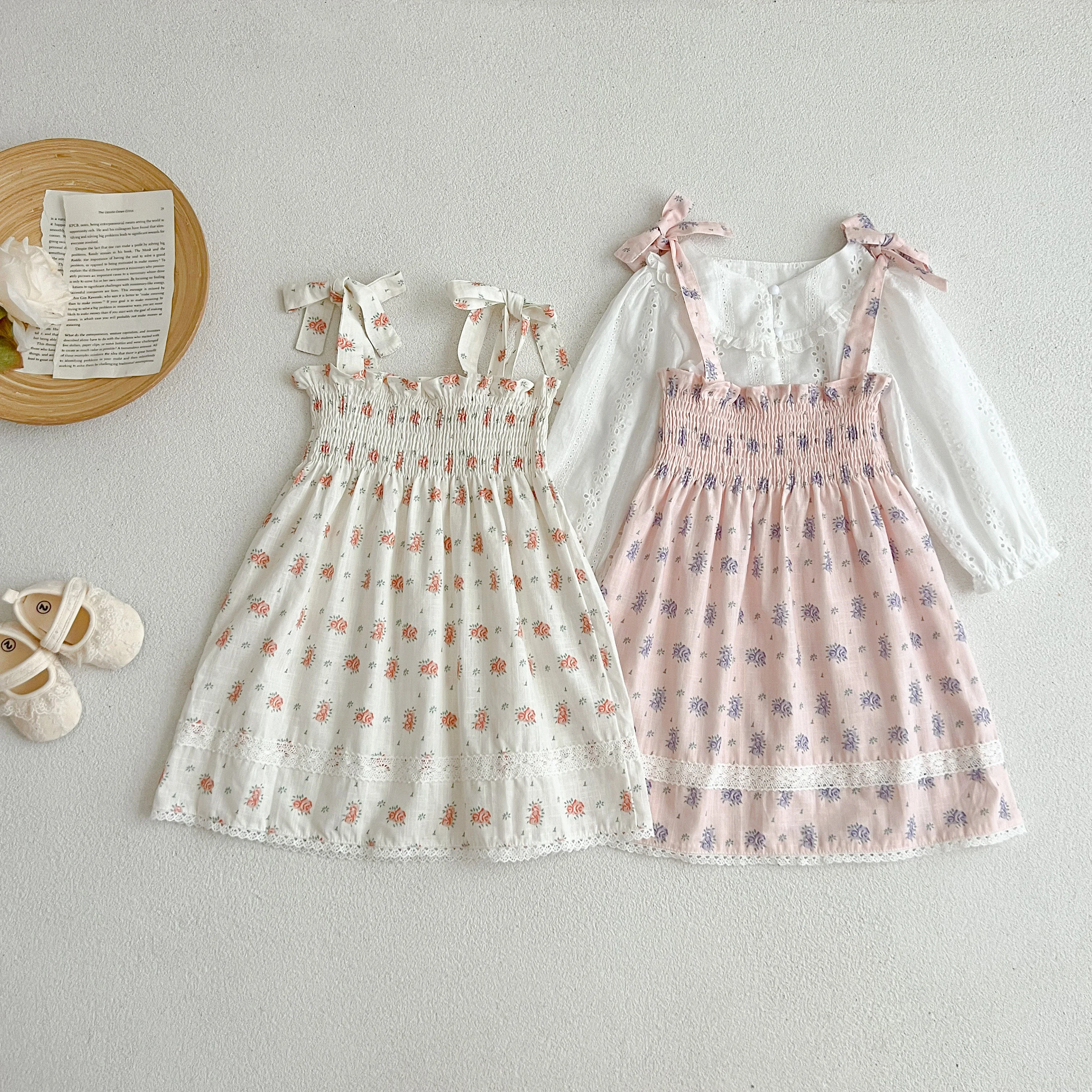 فستان صيفي للفتيات بزهور بروتيل مطرز مرصع بالخصر فستان دانتيل عصري لطيف للأطفال ملابس كورية للعطلات