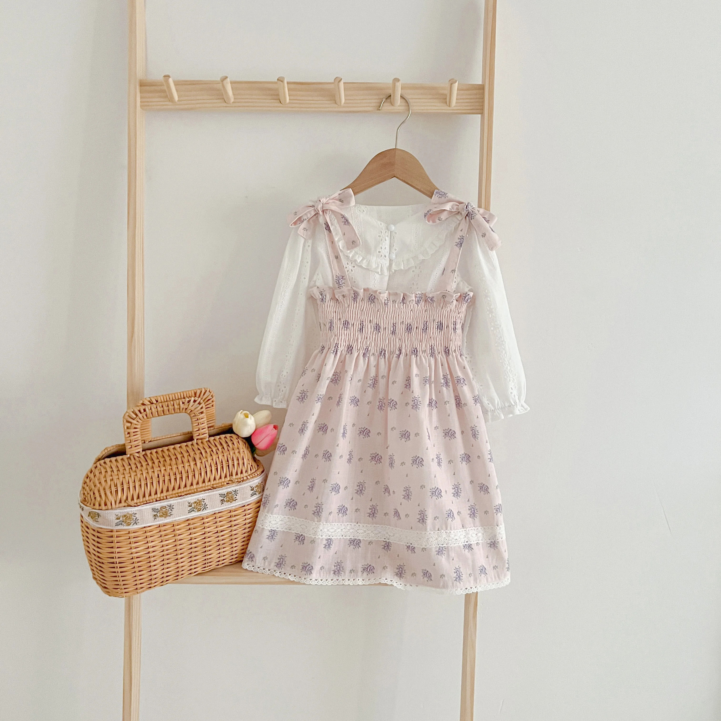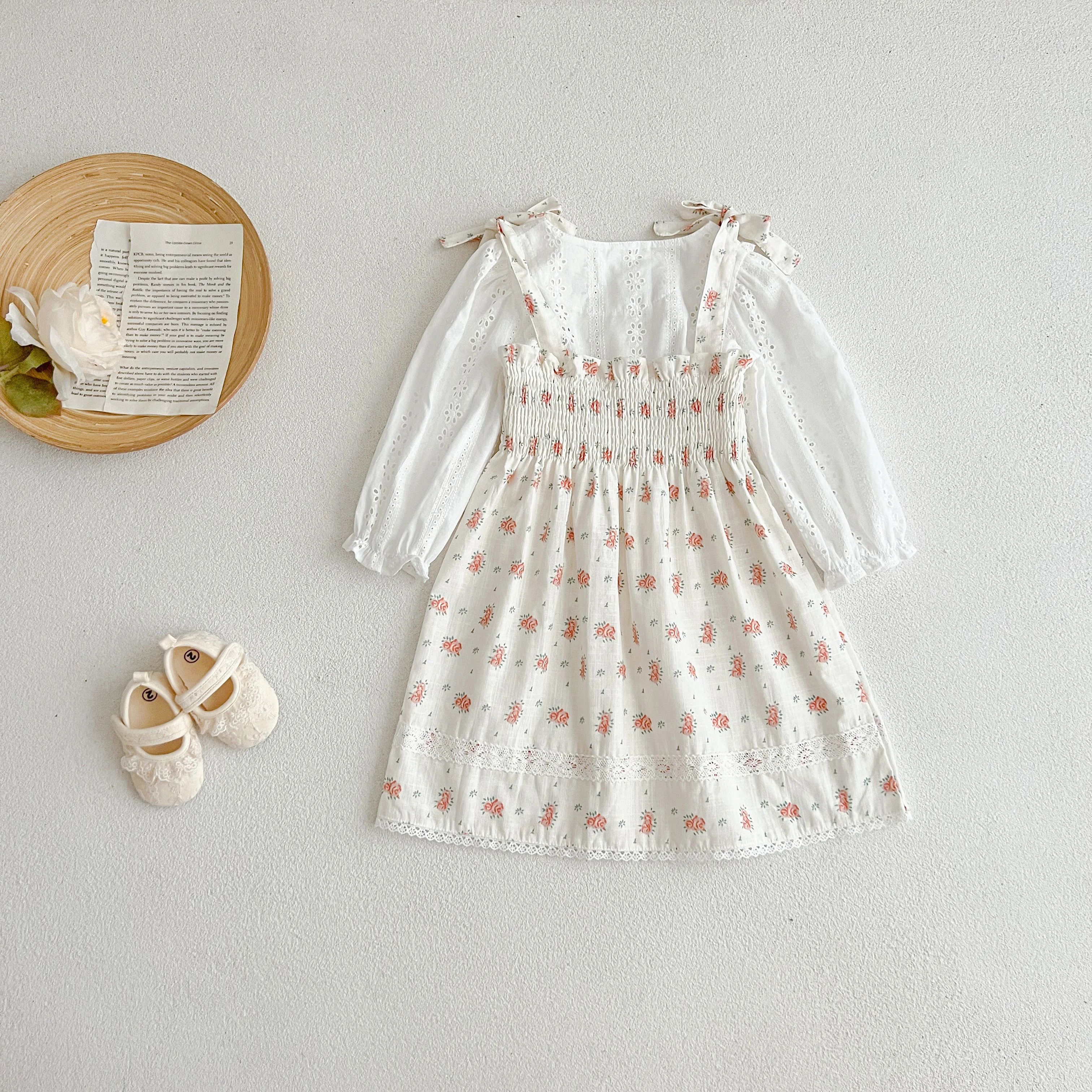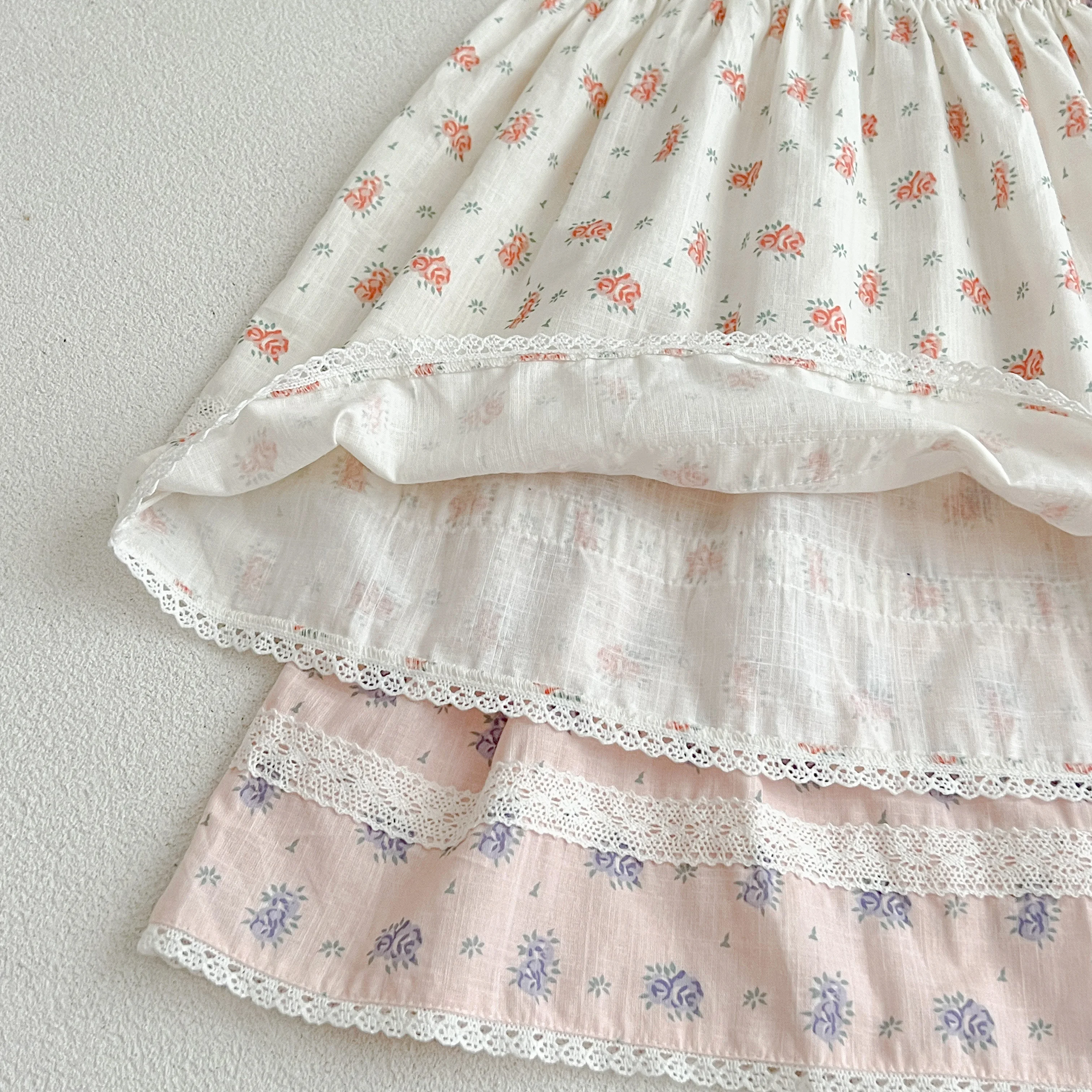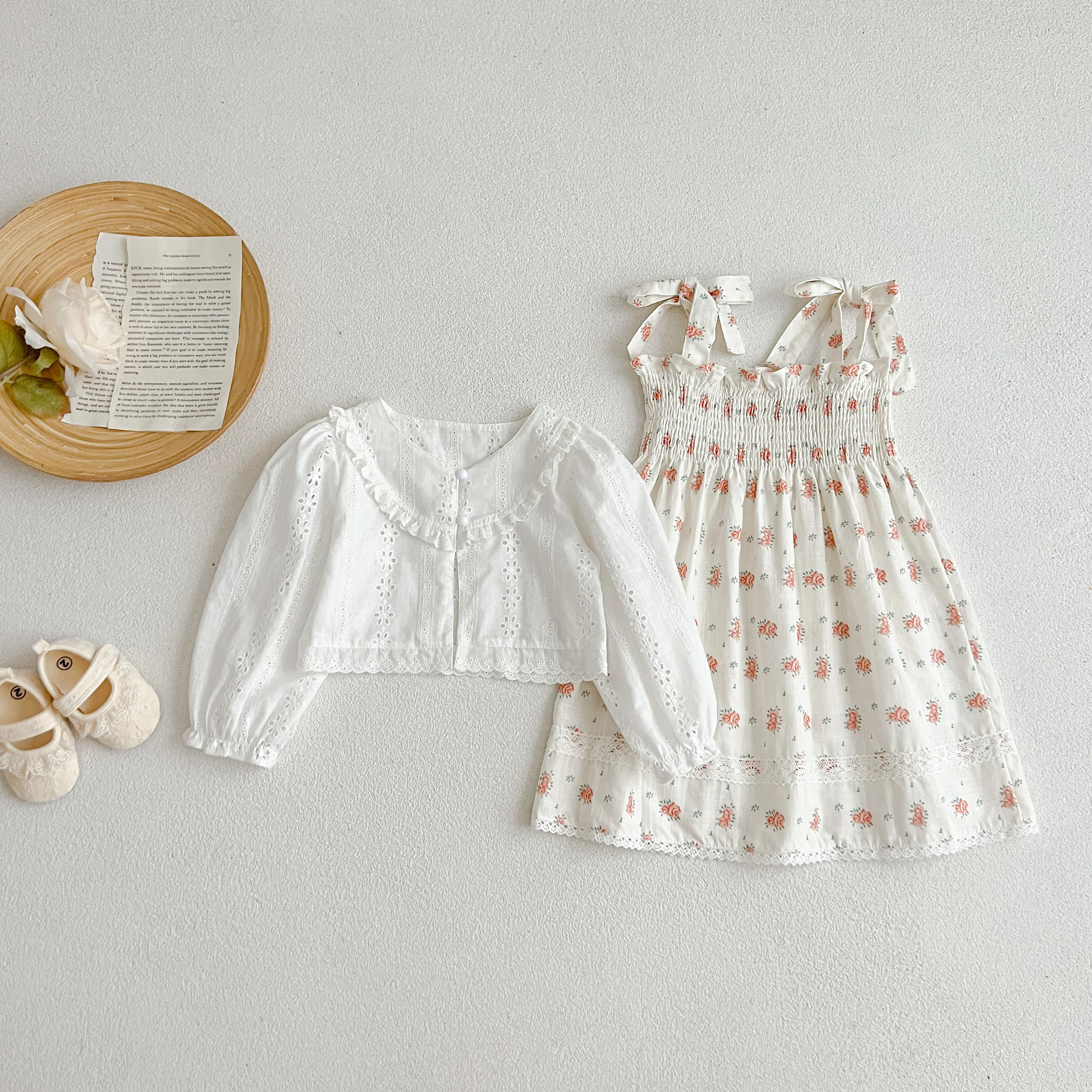 فستان صيفي للفتيات بزهور بروتيل مطرز مرصع بالخصر فستان دانتيل عصري لطيف للأطفال ملابس كورية للعطلات
