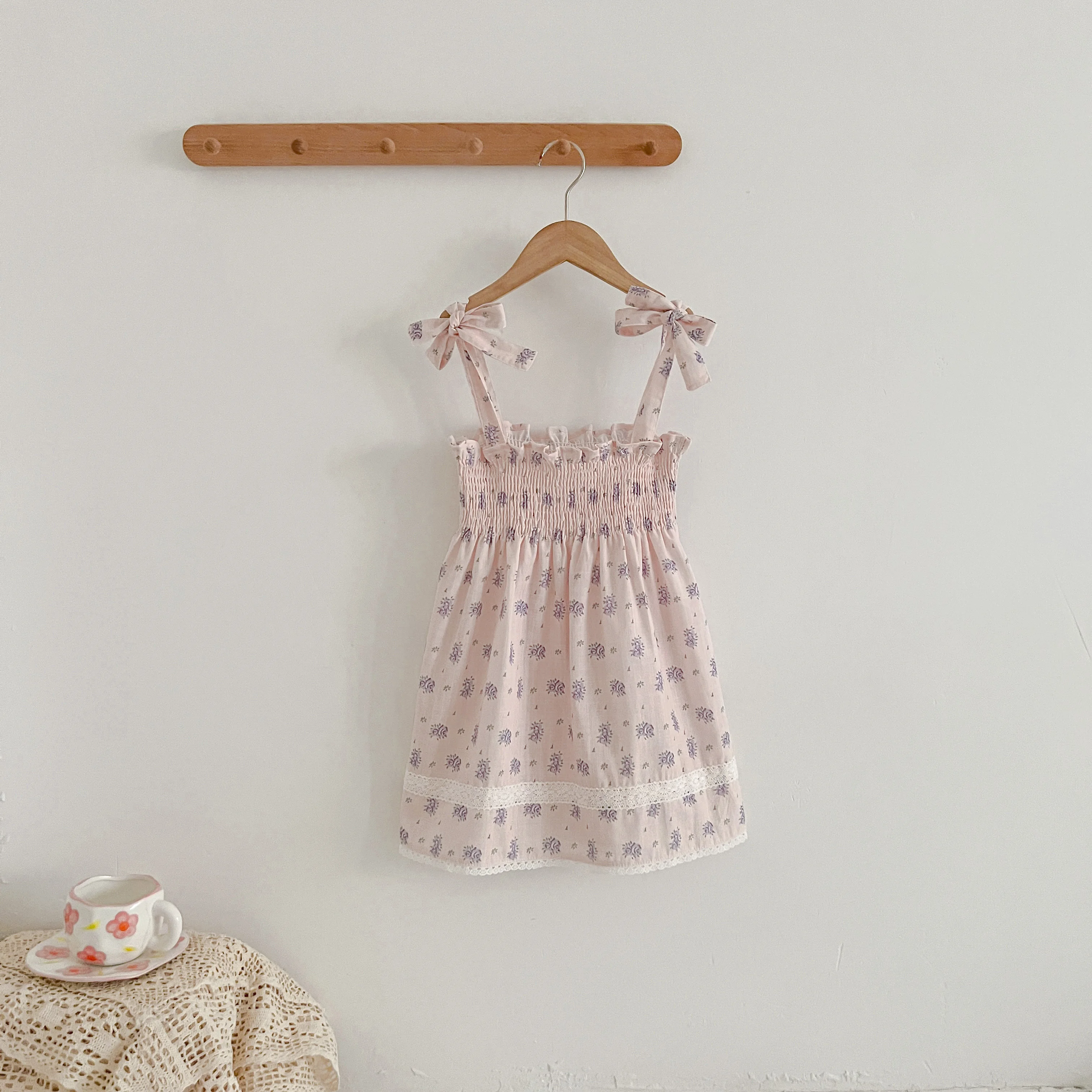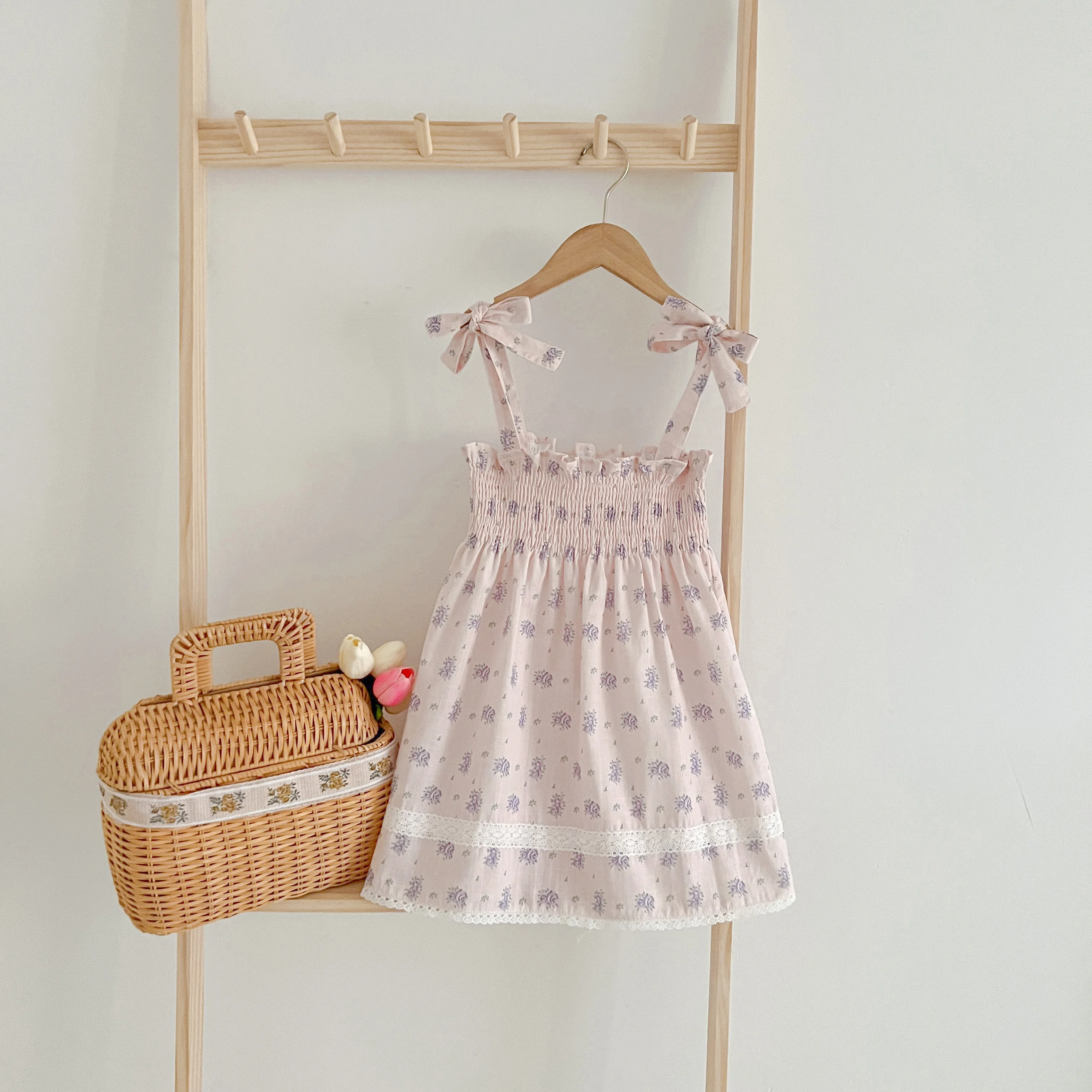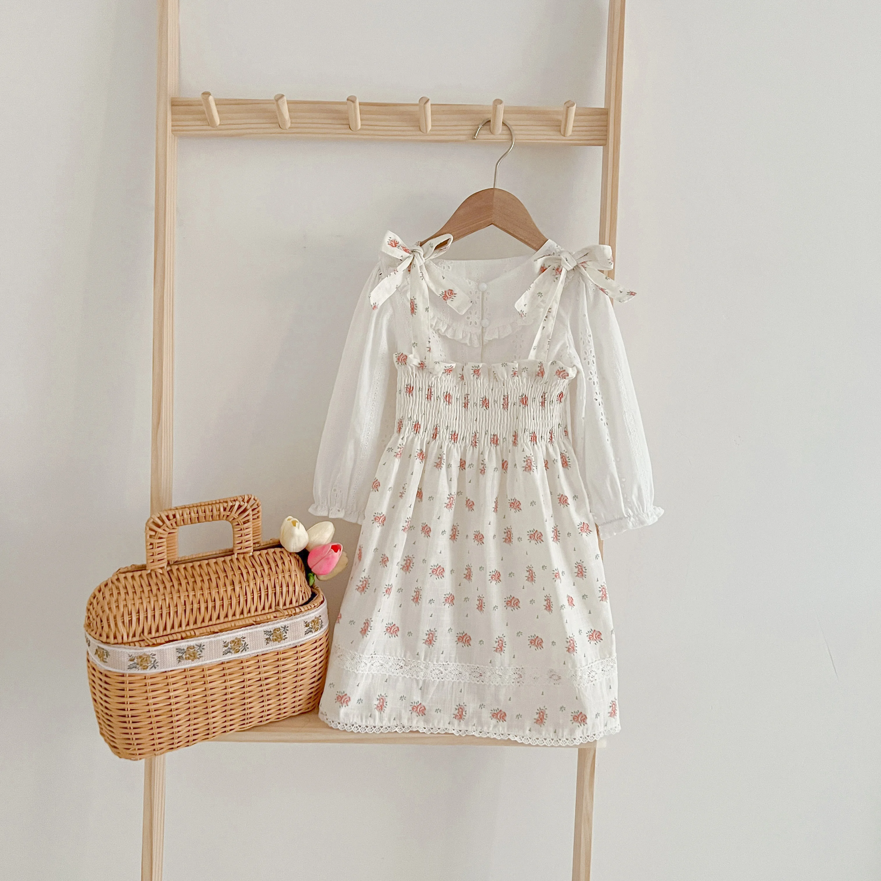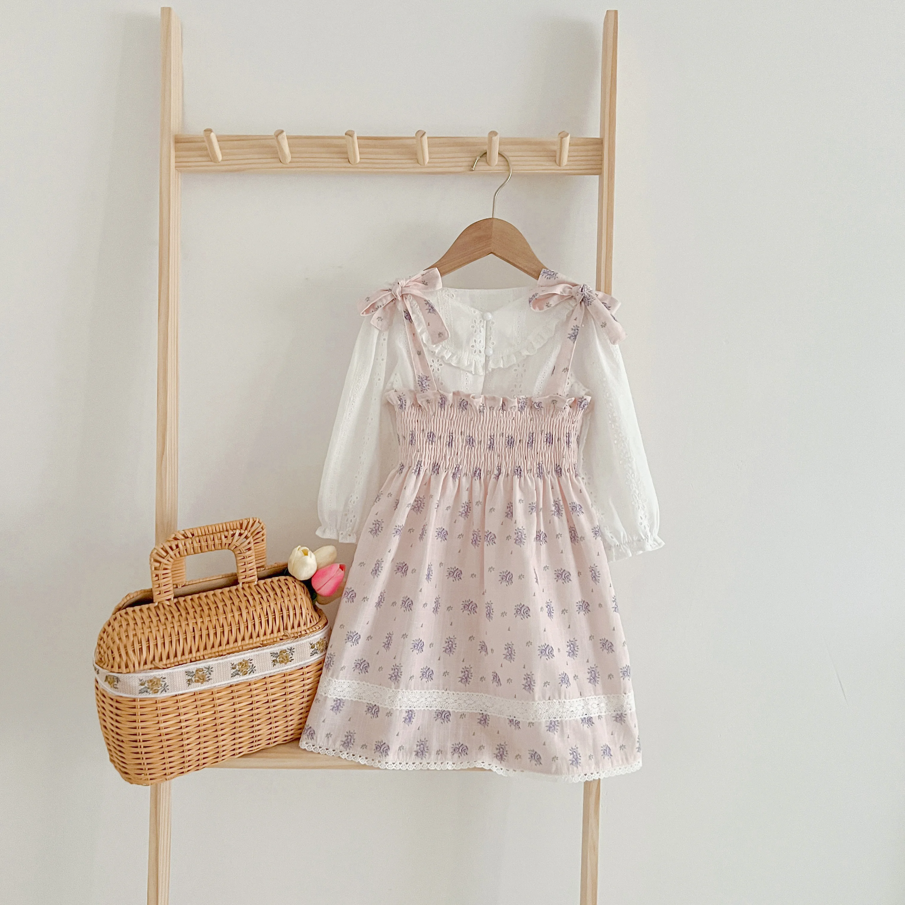 فستان صيفي للفتيات بزهور بروتيل مطرز مرصع بالخصر فستان دانتيل عصري لطيف للأطفال ملابس كورية للعطلات