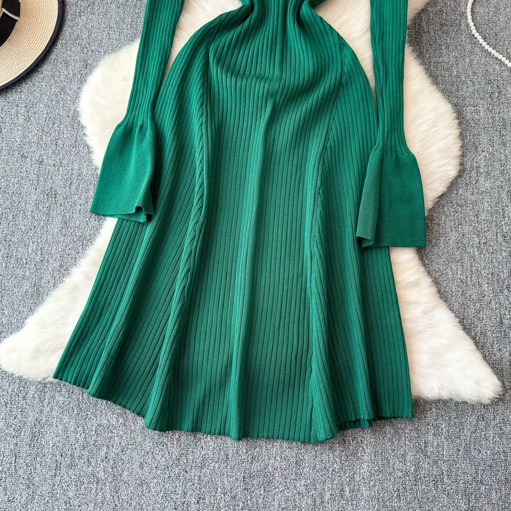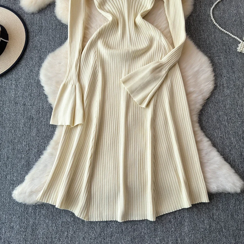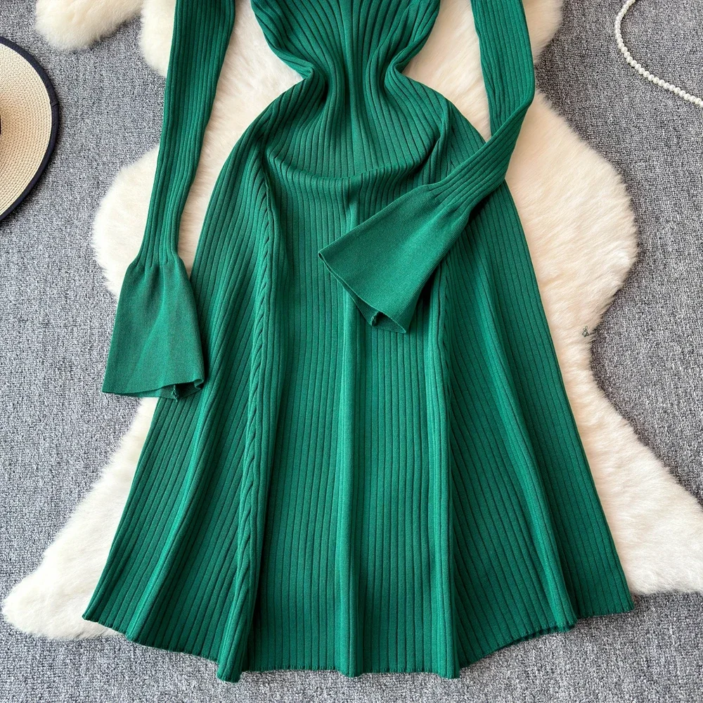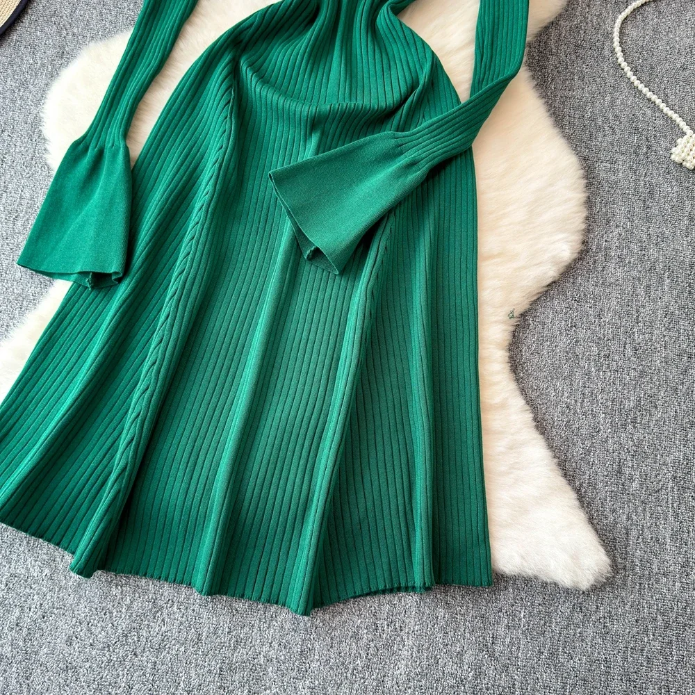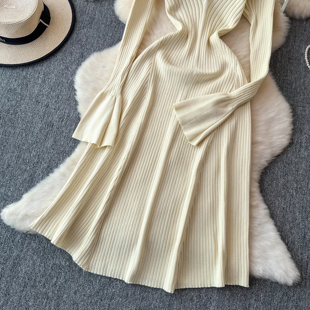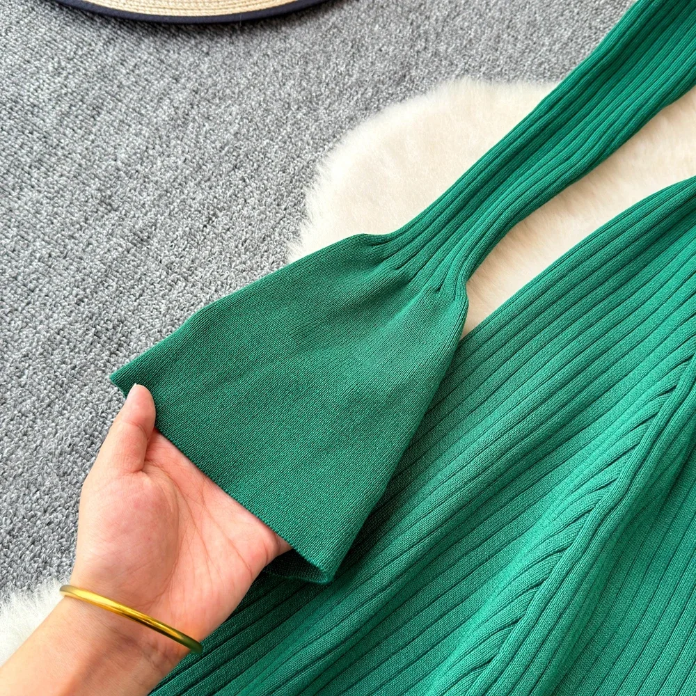 فستان طويل محبوك أنيق للنساء بأكمام مضيئة وفتحة رقبة على شكل V وكشكشة فساتين ضيقة للحفلات موضة المكتب للسيدات
