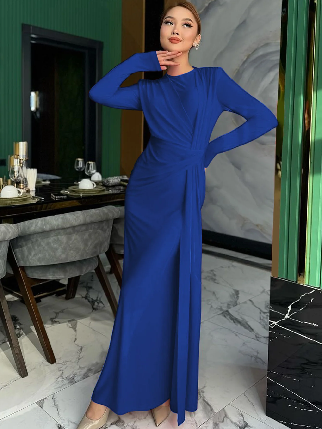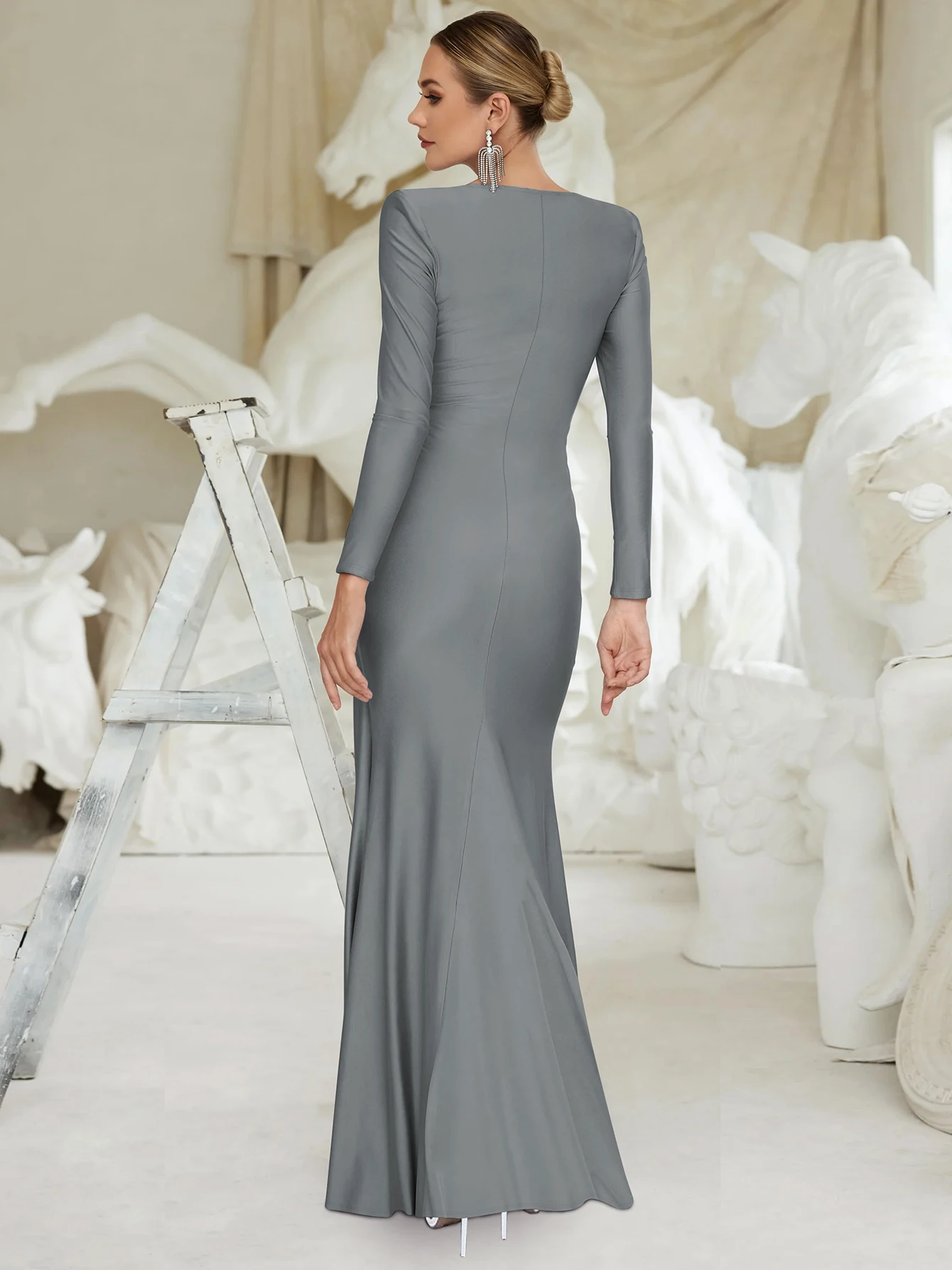 - يعزز من ملامح الأنوثة بأسلوب راقٍ من خلال قصته الطويلة التي تمنح مظهرًا راقي وتبرز جمال القوام بانسيابية فاخرة