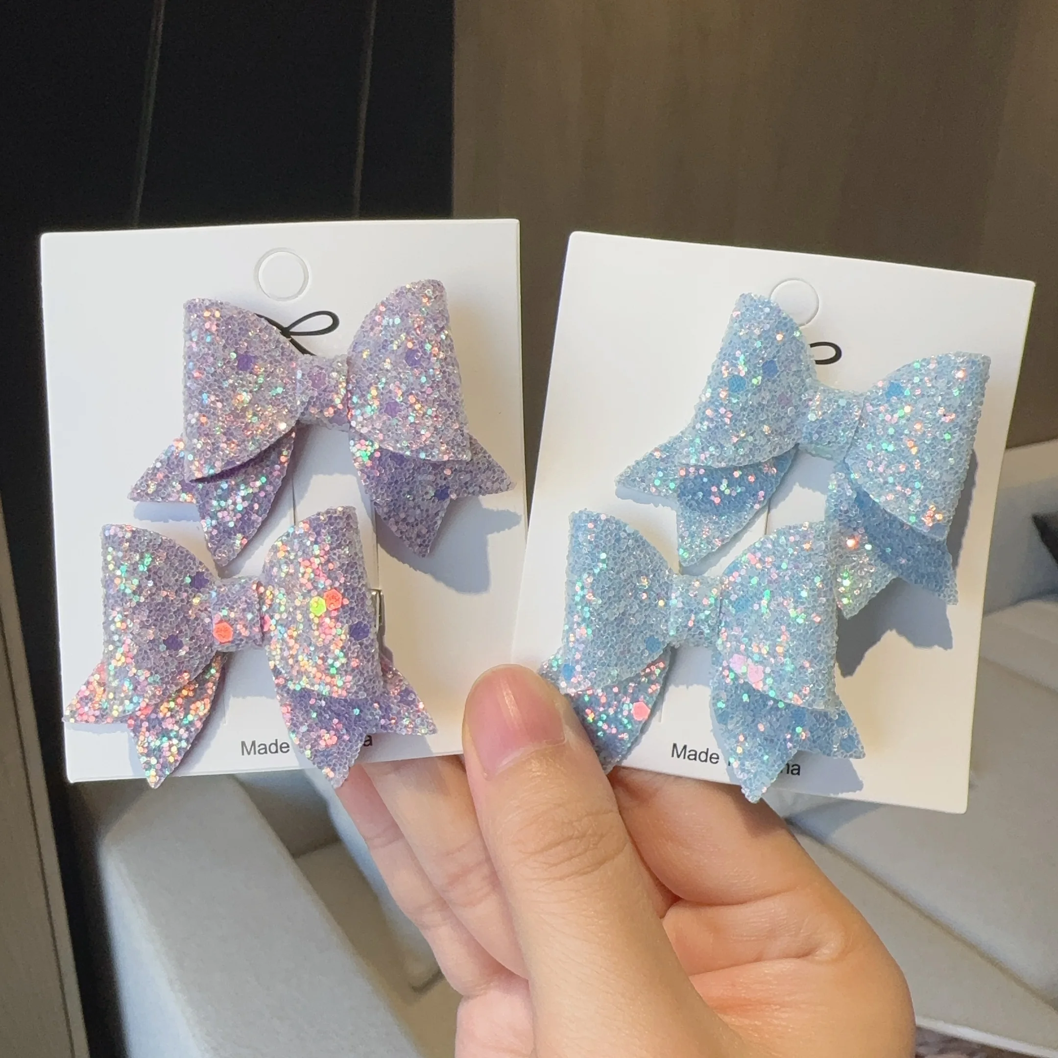 2 قطعة الفتيات لطيف الترتر مزدوجة فراشة مشبك شعر القوس دبابيس الشعر DIY أغطية الرأس القوس ديكور Hairgrip الأطفال إكسسوارات الشعر