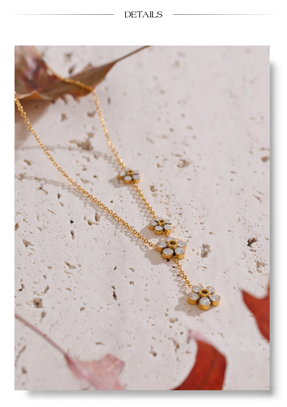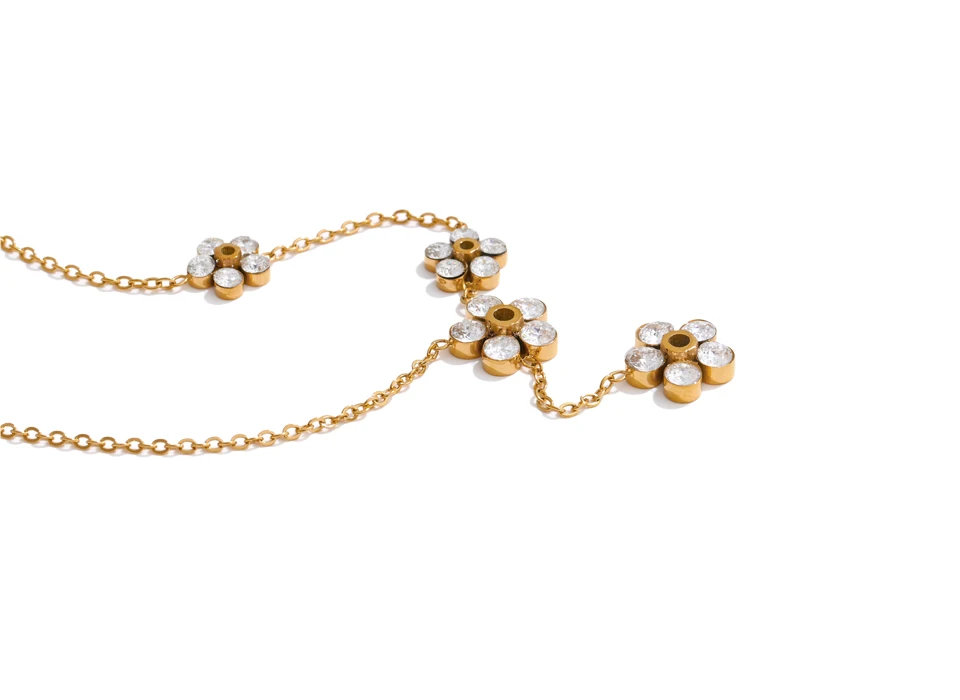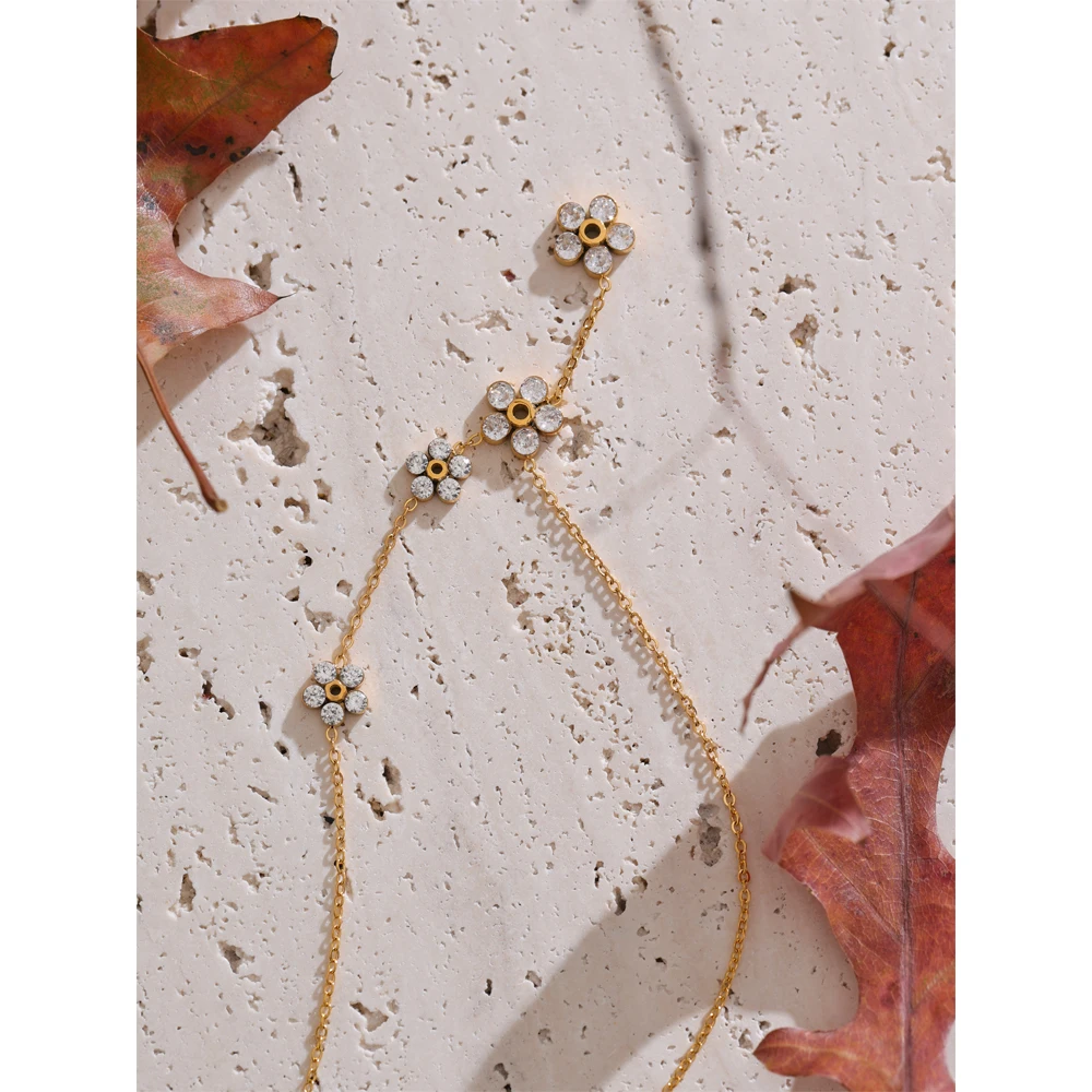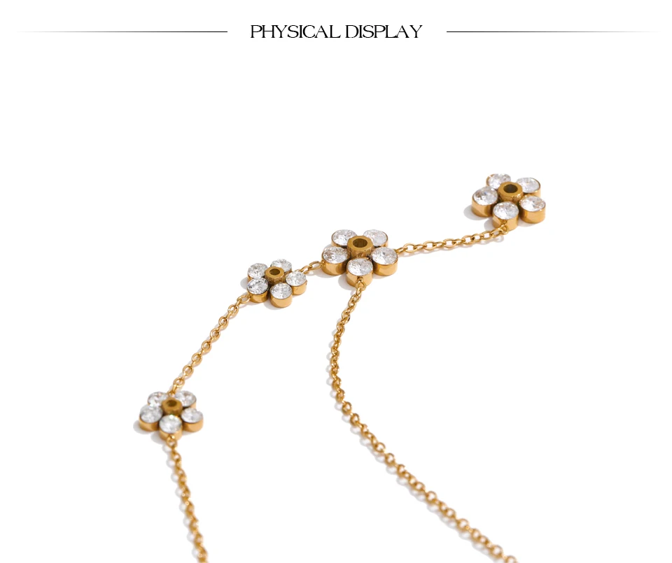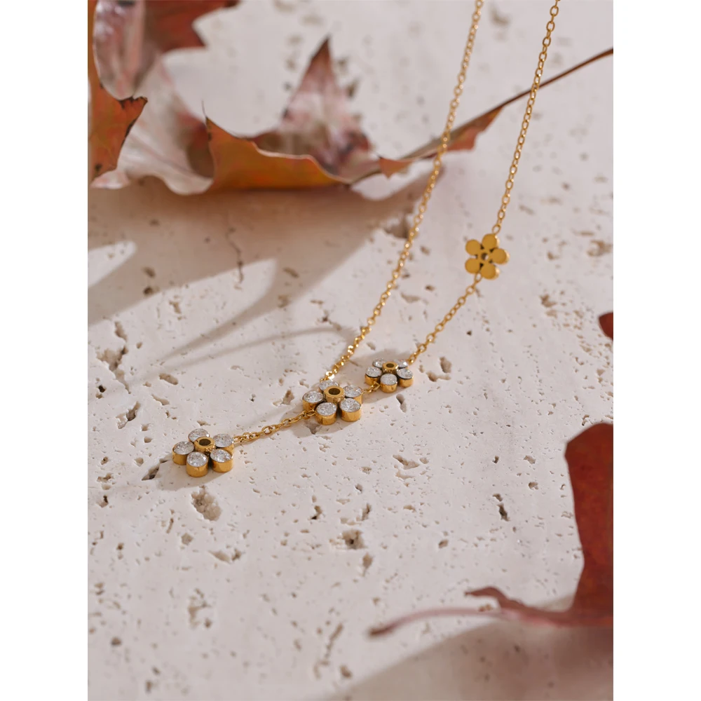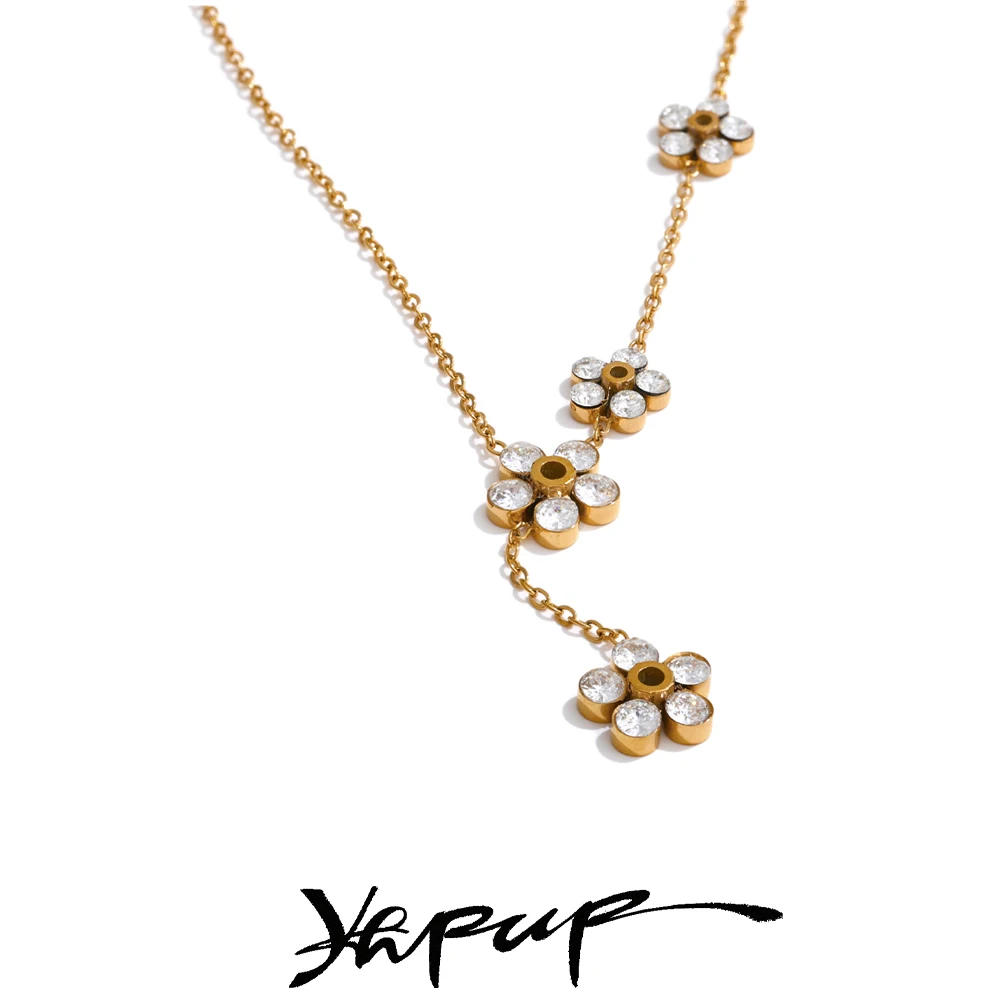 Yhpup حساسة لامعة زركون زهرة شيك سلسلة قطرة قلادة ذهبية للنساء الفولاذ المقاوم للصدأ عالية الجودة طوق مجوهرات