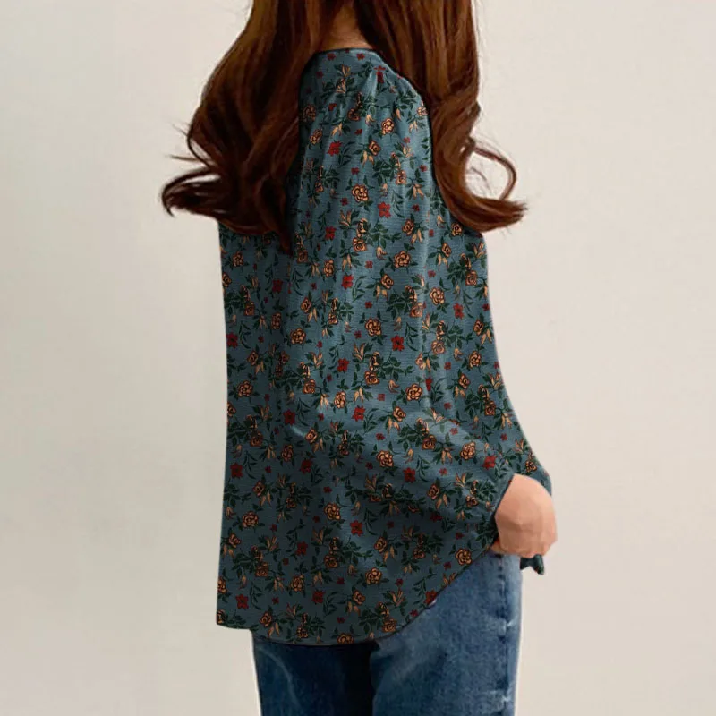 بلوزة قطنية ذات تصميم مكشكش أنيق مع أكمام طويلة منفوشة تضيف لمسة درامية راقية، مصنوعة من القطن الناعم لتمنحكِ راحة وأناقة في إطلالات الخريف الكاجوال والعملية.