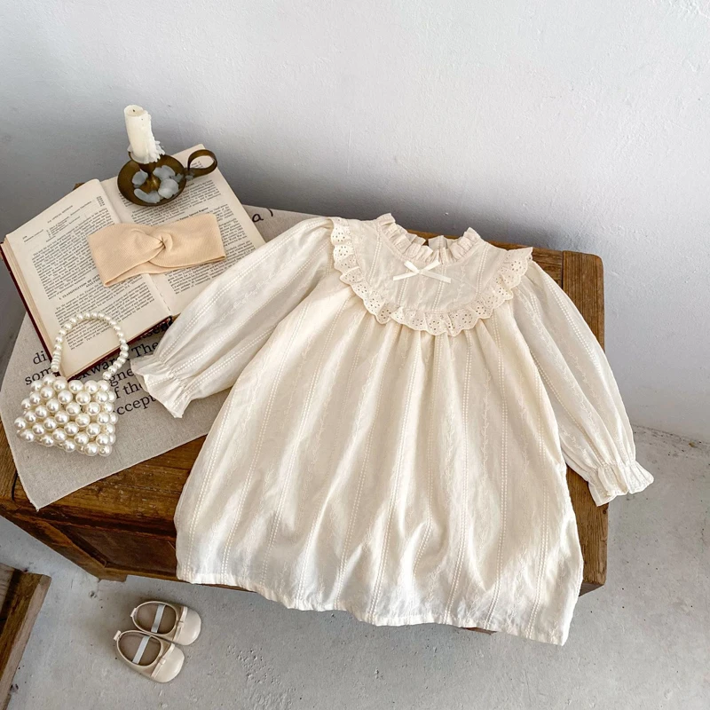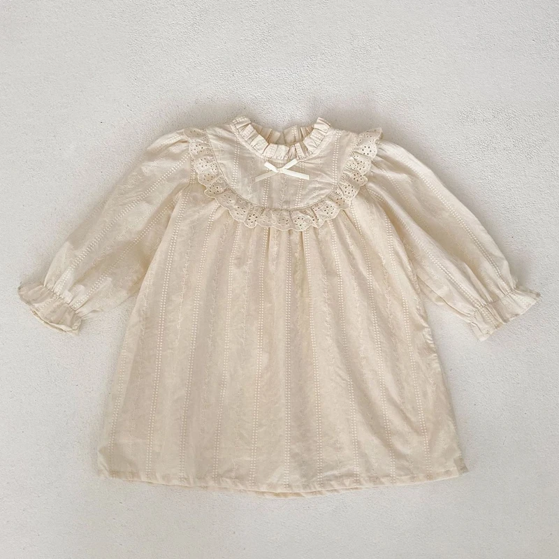 فستان دانتيل بأكمام طويلة للفتيات الصغيرات ، فستان أخوات ، ياقة رقيقة ، ملابس مطرزة ، جديد ، خريف ، عمر 0-3 سنوات